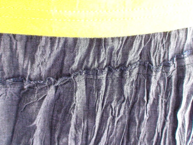 スカートの段は、生地の両端をロックかけ、重ね合わせて縫った。