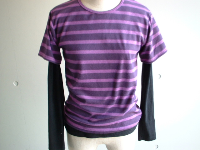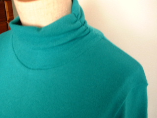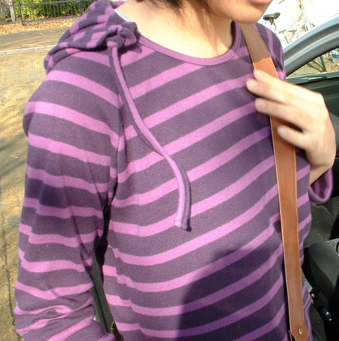 先日縫った紫のチュニックに黒のタートルを合わせて着た。