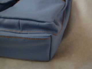 持ち手部分、強化されるように表布と裏布で本体を挟んで縫った。