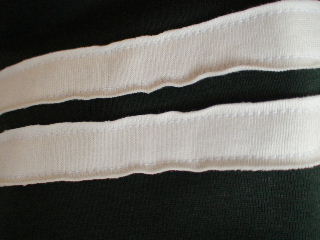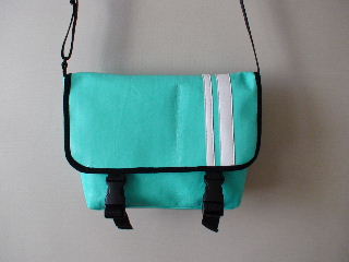 前回縫ったカーキニットのメッセンジャーと同じ型紙で、前は縫い代忘れたが
